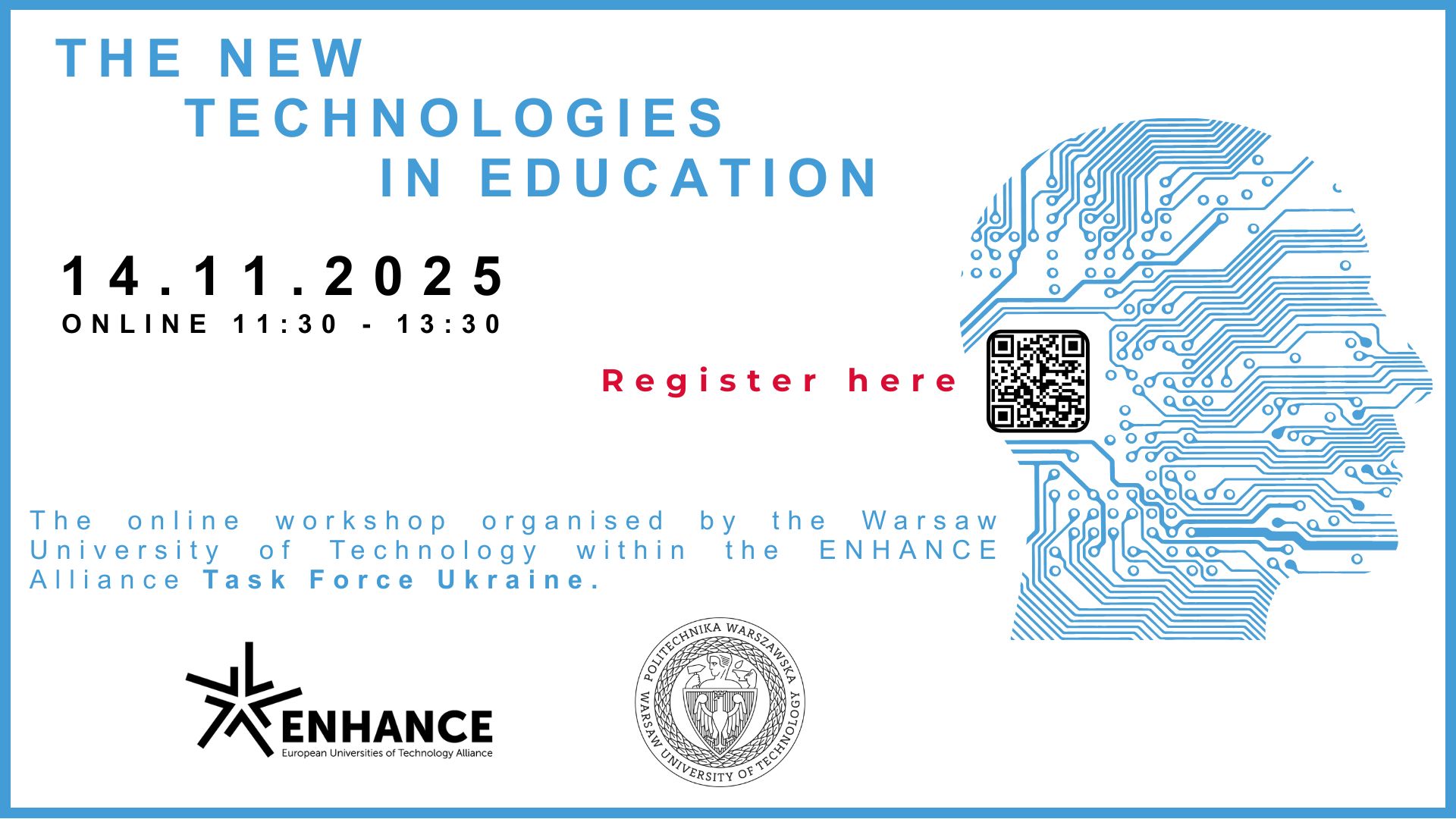 Serdecznie zapraszamy studentów oraz nauczycieli akademickich i wszystkie zainteresowane osoby do wzięcia udziału w wyjątkowym wydarzeniu online: „Nowe technologie w edukacji” , organizowanym w ramach inicjatywy ENHANCE Task Force Ukraine.